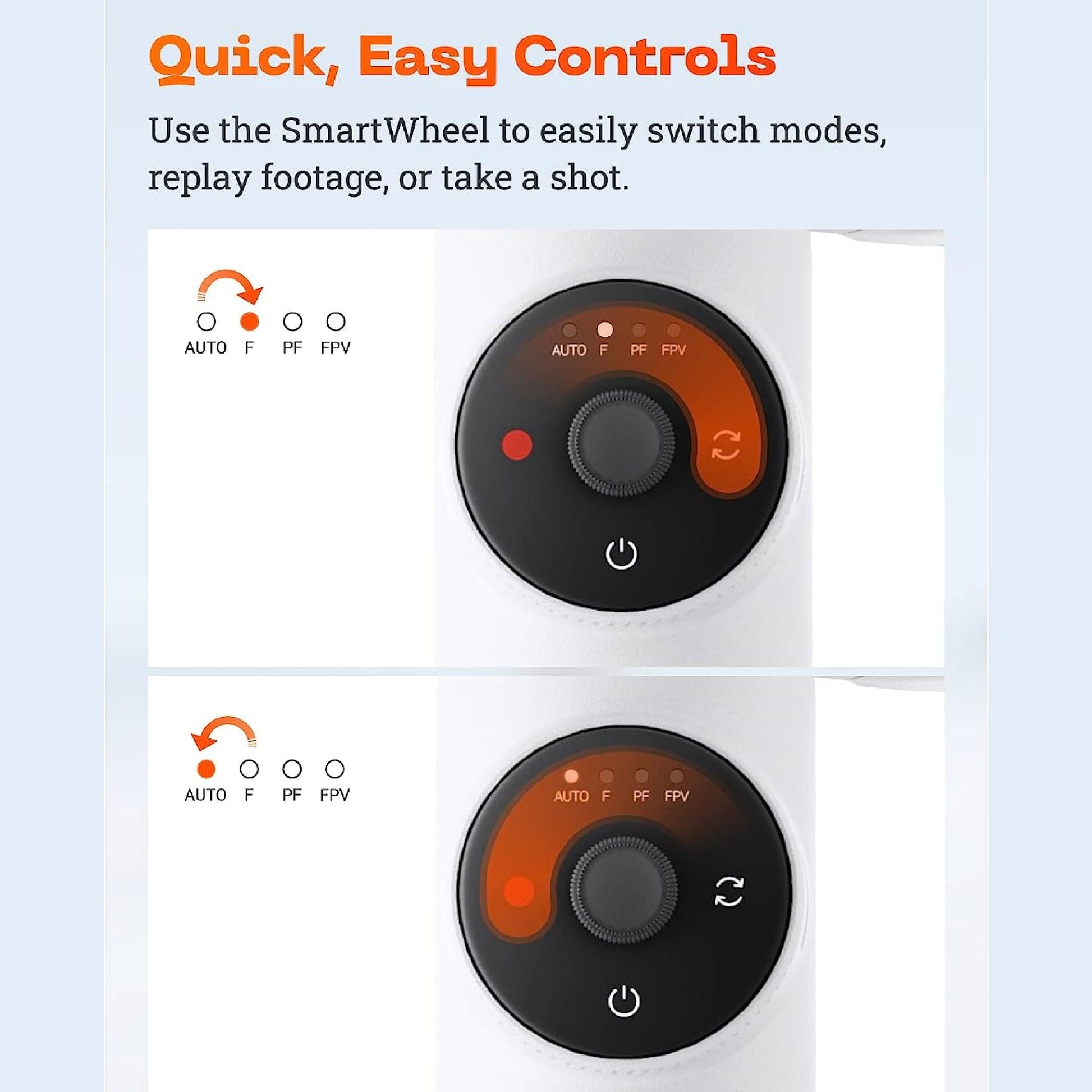 The SmartWheel boasts a minimalist design and gives you quick, easy access to a host of useful functions, from shooting controls, to video replay, and more.