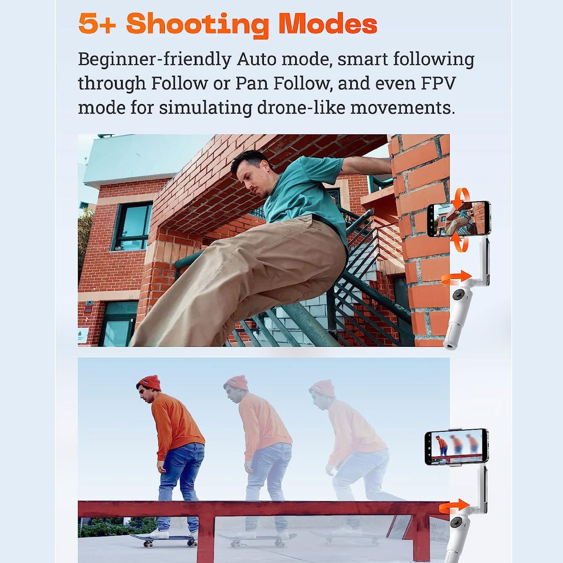 • FPV: Take full control and simulate FPV drone-like movements, backed up by gimbal stabilization.